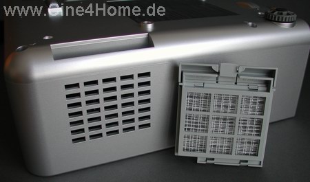 Vorbildlich ist die Positionierung des Filters an der Geräteseite. Im Falle der Filterreinigung, die grundsätzlich bei jedem Projektor regelmäßig erfolgen sollte, kann dieser mit einem Handgriff auch bei Deckenmontage aus dem Gerät gelöst werden.