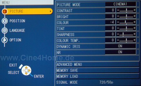 Beim Panasonic verhält es sich genau umgekehert wie bei Epson. Er bietet zwar übersichtliche und schnell erlernbare Menüs, doch dafür ist seine Funktionsvielfalt sehr eingeschränkt. Man beschränkt sich ausschließlich auf das Nötigste, zahlreiche Funktionen zur Optimierung von Farben, Signal etc. sucht man vergebens. Besonders die Einstellmöglichkeiten des Gammas enttäuschen.