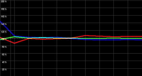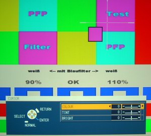Wichtig für die Farbdarstellung ist vor allem auch die Abstimmung auf die von der Videonorm vorausgesetzte Farbtemperatur von 6500K / D65. Diese Abstimmung fällt ab Werk selten perfekt aus, sollte aber zumindest durch die Bildparameter ermöglicht werden können.