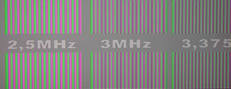 Außenseiter in Sachen Konvergenz ist der PT900, und zwar nicht wegen seiner Werksjustage, die ist genauso gut wie bei der Konkurrenz. Grund für die Abwertung ist eine Konvergenzverschiebung durch die Optik (Chromatic Abberation). Je nach Lensshift und Zoom kommen störende Farbsäume bis zu zwei Pixeln Breite ins Bild.