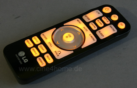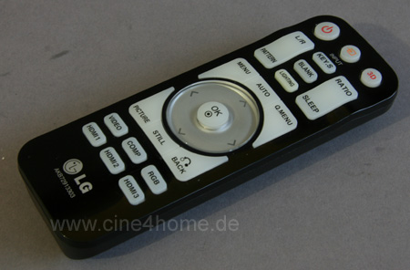 Der exklusiven Preisklasse nicht ganz gerecht wird die Fernbedienung: Ihre kleine Bauweise und das spartanische Tastenlayout erinnern mehr an einen Infrarotgeber für herkömmliche Präsentationsbeamer.