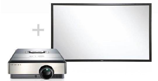 Für die 3D Projektion hat man nicht die Wahl der Leinwand, hie rist aufgrund der passiven Brillentechnologie eine Silberleinwand wie im Kino erforderlich, um die Polarisation der beiden Lichtwege zu erhalten.