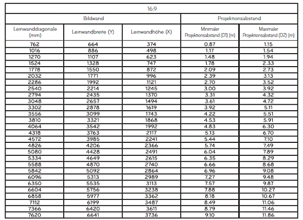 In Sachen Projektionsabstände stellt der LG CF3D schon eine kleine Sensation dar: Trotz seines komplizierten optischen Aufbaus ist er in der Lage, die in Heimkinos gängigen Bildbreiten von 2m bis 3m schon ab 3,5m Projektionsabstand zu erreichen.