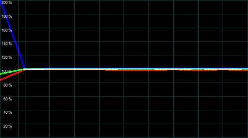 Bevor wir mit den subjektiven Seheindrücken beginnen, analysieren wir die Bildtrennung der beiden Perspektivbilder. Je größer die Auslöschung, desto weniger Ghosting, Doppelkonturen bzw. „Übersprechen“ zeigen sich in der 3D-Projektion, desto schärfe und plastischer ist der Seheindruck. Die maximal theoretisch mögliche Auslöschung kann man direkt im Lichtweg messen, sage und schreibe 98% erreicht der LG CF3D hier. Misst man reflektiv über die Leinwand, so ist diese in die Kette mit einbezogen und die reale Bildtrennung wird deutlich: Über die Leinwand bleiben ebenfalls über 94% Auslöschung erhalten. Dieser Messwert bedeutet, dass z.B. nur maximal 6% Helligkeit des rechten Bildes im linken Auge „landet“, bzw. umgekehrt. Dies ist eine hervorragende Auslöschung, die die üblichen Shutter-Beamer um Längen schlägt und sogar in öffentlichen Kinos kaum erreicht wird. Aus diesen Vorabmessungen sollte sich in der Praxis ein möglichst Ghostingfreies Bild ableiten lassen.