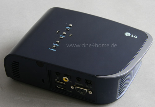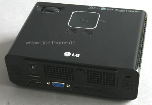 Verblüffend ist, wie aufwendig und attraktiv das Chassis des 200ers trotz seiner kompakten Abmessungen von gerade einmal 183 x 60 x 122mm gestaltet wurde: Die geschwungene Flügelform wurde mit einem hochwertigem Klavierlack-Finish kombiniert, so dass der LG-Zwerg rein äußerlich die meisten Heimkinobeamer aussticht.