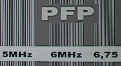 Dementsprechend mäßig fallen die Skalierungsergebnisse bei der Zuspielung von herkömmlichem PAL-Material aus: Auch in niedrigeren Frequenzen sind Skalierungsartefakte und Linearitätsschwankungen sowohl horizontal als auch vertikal auszumachen.