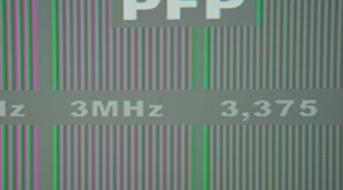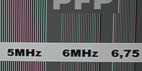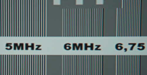 Horizontal muss weiterhin skaliert werden (von 720 auf 1024), doch durch die erhöhte Auflösung gelingt dies bei dem HX300 wesentlich präziser und freier von Artefakten als beim 200er. Lediglich im ohnehin schwierigen Auflösungsbereich um 6MHz sind leichte Linearitätsschwankungen zu erkennen, vor denen aber auch teure Heimkinobeamer selten gefeit sind.