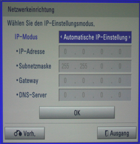 Die letzte Einstellkategorie ist für viele Beamerfans neu, denn hier werden sämtliche Netzwerkeinstellungen vorgenommen (vgl. oben).