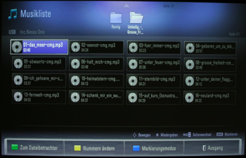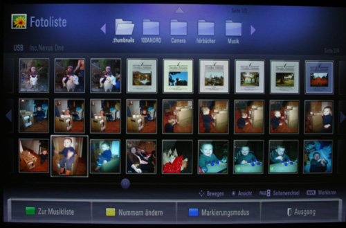 Stellvertretend für alle Modelle haben wir dem HW300Y auch Videodateien per USB-Stick zugespielt: Unsere DIVX- und MKV- Demofiles wurden alle problemlos wiedergegeben, aber die Filestruktur ist teilweise recht unübersichtlich und Vorschau-Icons (wie bei den Fotos). gibt es im Auswahlmenü leider auch nicht.
