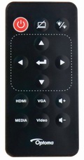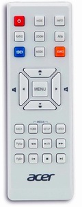 Der Ansatz des Acer K335 ist zweifelsohne der konservativste von den Dreien: Auf dem Gerät befinden sich die klassischen Drucktasten mit den wichtigsten Grundfunktionen (Power Menü, Input, Steuerkreuz), so dass der Projektor auch ohne Fernbedienung gesteuert werden kann.