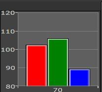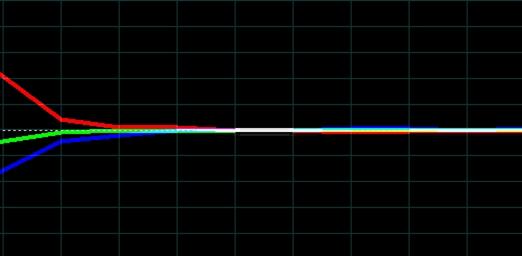 Obige RGB-Verteilung zeigt das “bestmögliche” Ergebnis, ein deutlicher Rot/Blau Überschuss prägen die Farbmischungen, wahrscheinlich um das übersättigte Grün etwas auszugleichen. Es gibt keinerlei Einfluss auf die Farbtemperatur.