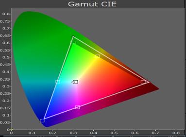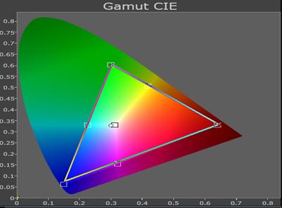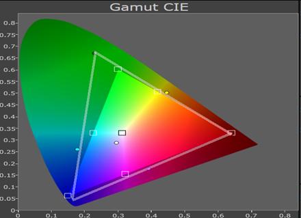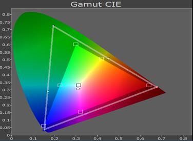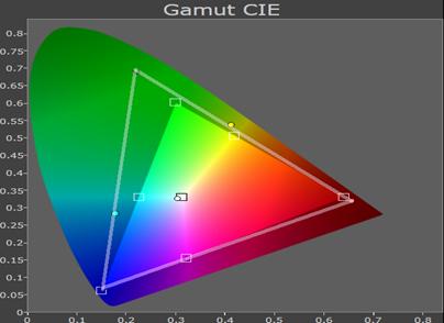 Der Acer K335 bietet keinen Einfluss auf den Farbraum, auch die verschiedenen Presets unterscheiden sich in dieser Hinsicht nicht, sondern zeigen alle denselben stark erweiterten Farbraum: