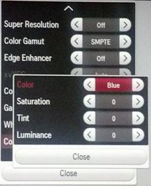 Wer selbst Hand anlegen möchte, dem steht ein komplettes Color-Management zur Verfügung. Es erlaubt die Beeinflussung aller Primär- und Sekundärfarben in Tönung, Sättigung und Helligkeit. Uns gelang es damit, den Farbraum der Videonorm weiter anzunähern