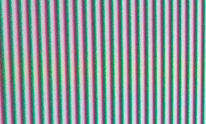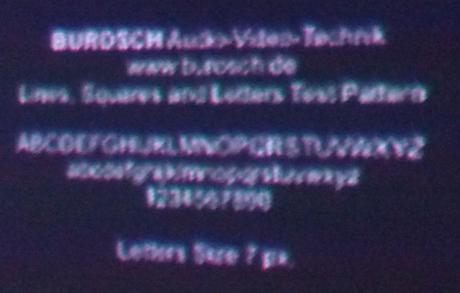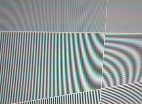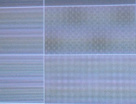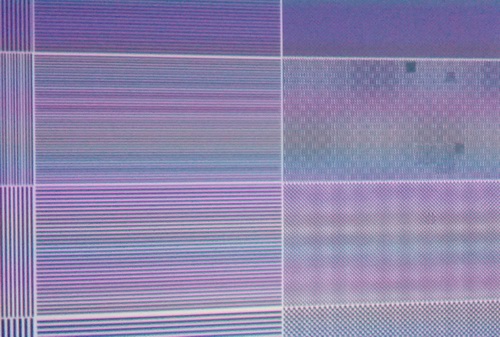 Im obigen Bild sehen wir einzeilige Kleinstdetails von einem Pixel Breite. Dem PF-80 G gelingt es, diese ohne starken Pegelabfall abzubilden und gewährleistet die DLP-typische hohe Schärfe. Die Pixelgenaue Ansteuerung vermeidet vor allem in feinen Strukturen störende Interferenzmuster.