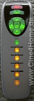 Durch ihre eigenwillige Tastenanordnung und Form wirkt sie futuristisch, gleichsam wie aus einem Star-Trek Film entliehen. Ihre wenigen Tasten beschränken sich auf das wirklich Wesentliche, dazu gehören direkte Eingangswahltasten, ein Steuerkreuz mit Enter-Taste, Menüfunktion, eine Formatumschaltung und natürlich eine Power/Standby Taste. Tatsächlich ermöglicht diese intelligente Auswahl eine unkomplizierte und schnelle Bedienung des Matterhorn Projektors.