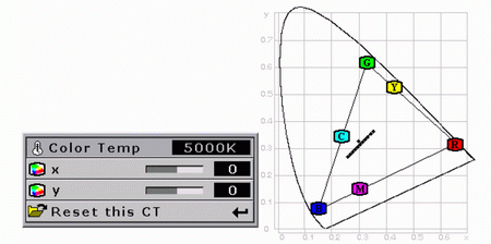 Um eine adäquate Farbreproduktion des Filmoriginals auf der Leinwand zu gewährleisten, muss der Projektor den Weißabgleich aufweisen, der bei dem Video-Mastering zu Grunde lag: 6500K (D65). Neutrale Graustufen müssen also stets der recht warmen Farbtemperatur von 6500K entsprechen. Das Bildmenü des NHT576 ist dabei lobenswert „technisch“: Statt nichts-sagende Umschreibungen wie „natürlich“ oder „warm“ kann der Anwender hier die gewünschte Farbtemperatur direkt auswählen, darunter auch die erforderlichen 6500K.