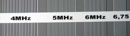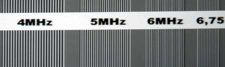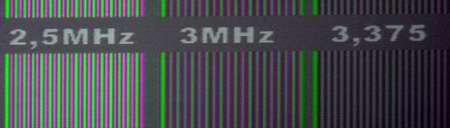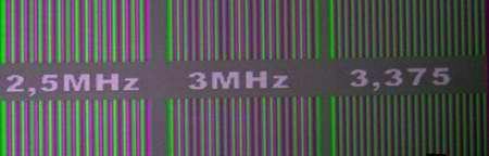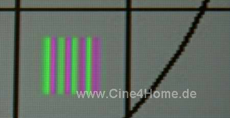 Gleiches gilt für die Farbauflösung. Bis hin zur höchsten Frequenz bleiben die Farbsignale unseres Testbildes klar voneinander getrennt (Magenta und Grüne Streifen).