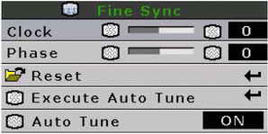 In ihr können sowohl „Takt“ als auch „Phase“ auf analoge RGB H/V Quellen abgestimmt werden, um eine scharfe und pixelgenaue Darstellung des Computerbildes zu erzielen. Für mehr Komfort kann auch ein automatischer Abgleich („Auto Tune“) aufgerufen werden.