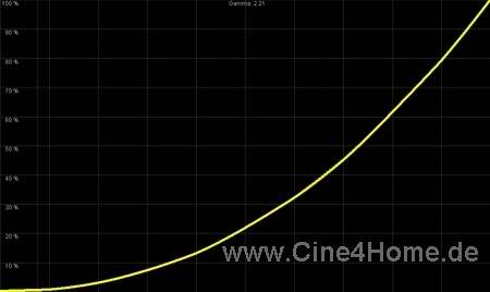 Für die Filmwiedergabe von DVDs ist der „vorgeschriebene“ Helligkeitsanstieg eine Kurve mit einem Wert zwischen 2,2 und 2,5. Innerhalb dieses Spielraums kann der Anwender das Bild auf seinen persönlichen Geschmack und die Raumbedingungen anpassen: Je dunkler der Raum und je weniger Streulicht, desto höher der machbare Gammaanstieg. Wie schon bei der Farbtemperatur ist das Bildmenü des NHT576 in seinen Angaben erfreulich technisch präzise: Der gewünschte Gammaanstieg kann direkt als Zahlenwert ausgesucht werden. Zur Auswahl stehen gleich sieben verschiedene Gammakurven von „1.0“, „1.5“, „1.8“, „2.0“, „2.2“, „2.35“, „2.5“ und „2,8“. Wie genau die angegebenen Werte erreicht werden, haben wir wieder messtechnisch erfasst und waren erneut von der Genauigkeit der Werksabstimmungen überrascht: Bei der Gammaeinstellung „2,2“ entspricht der Helligkeitsanstieg auf der Leinwand tatsächlich genau einem Wert von 2,21. Auch die anderen für Heimkinos relevanten Werte von 2.35, 2.5 und 2.8 werden genau so eingehalten, wie es das Bildmenü verspricht.
