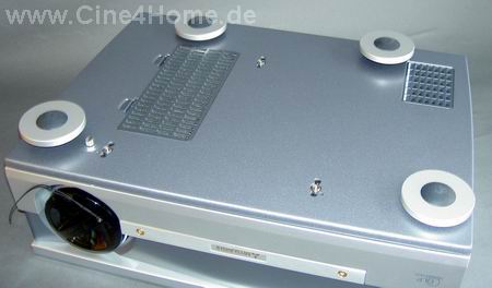 Dadurch entsteht eine großflächige Wärmeabfuhr auf der Unterseite. Diese passive Kühlung ist eine einfache wie geniale Methode einen Projektor leise zu bekommen. Nur sollte man im Betrieb die Finger von der Bodenplatte lassen: