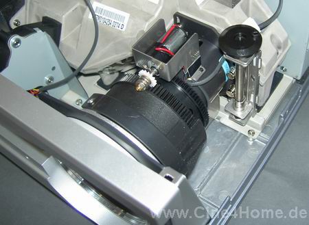 Die dafür notwendigen Motoren sind stabil und gut verarbeitet an der optischen Einheit angebracht.