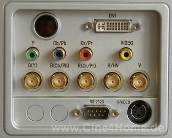 How Link hier) Für alle relevanten Anschlussarten sind die passenden Eingänge vorhanden: Composite, S-Video, YUV, RGB H/V und DVI. Besonders lobenswert sind die vergoldeten BNC-Ausführungen der RGB bzw. YUV Eingänge. BNC ist mit Abstand die hochwertigste und zugleich stabilste Verbindungsart für analoge Bildsignale. Leider findet man diese Eingänge sonst nur bei absoluten High-End Projektoren.