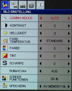 Ab Werk hat die Signalelektronik einen Hang zu Doppelkonturen, den man aber mit dem Schärfemenü des Projektors in den Griff bekommen kann.