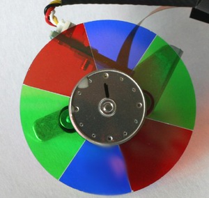 Man hat kein Farbrad mit Gelb- oder Weißsegmenten verbaut, sondern die für Heimkino immer noch am besten geeignete Variante mit doppelten Grundfarbsegmenten (RGBRGB). Ein kleines Opfer zu Gunsten der Maximalhelligkeit kann man aber in den vergrößerten Grünsegmenten ablesen. Inwieweit sich das auf die Farbdarstellung bei maximalem Kontrast auswirkt, werden wir im Test ausführlich untersuchen.