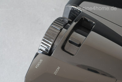 Die Projektionsoptik befindet sich vorne links und lässt sich manuell in Zoom und Fokus einstellen. Sie besteht aus 13 Vollglaselementen.
