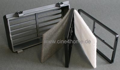 Zu diesem System des "Staubfängers" gesellt sich beim HC6000 ein verbesserter Außenfilter, der dem Projektor als Zubehör beiliegt. Der herkömmliche Schaumstoffilter kann durch den dickeren Filter vom Anwender jederzeit ersetzt werden.