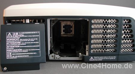 Der Lampenschacht (sprich Beginn des Lichtweges) befindet sich ebenfalls praktisch an der Seite des Projektors, so dass die Lampe einfach bei Bedarf getauscht werden kann.