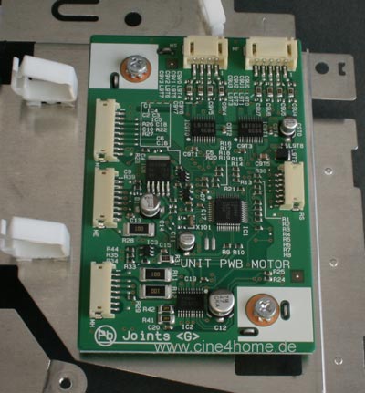 Neben der Hauptplatine befindet sich die Steuerplatine für die adaptive Lichtblende des Projektors. Es fiel sofort auf, dass diese anders bestückt und größer ist.