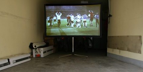 Vielleicht nicht die schönste Location, dafür aber ohne großen Aufwand zu realisieren: Installiert man den Projektor in einer Garage, so hat man den Vorteil, dass man die Leinwand im Schatten platzieren kann.