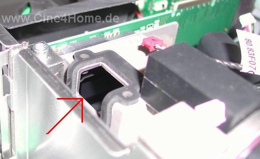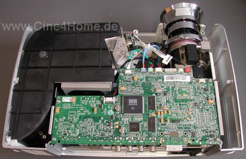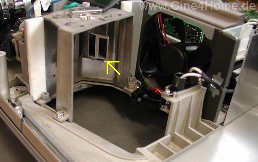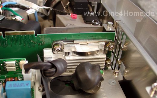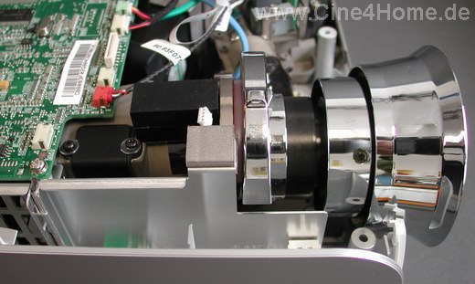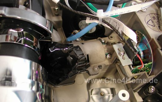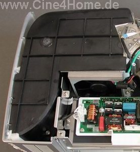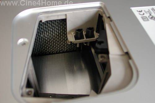 Unangenehm aufgefallen ist uns bei der Lampe, dass das Modul seitlich geöffnet ist (Bild oben). Im Falle eines Lampenplatzers können so leicht Glassplitter in den Projektor gelangen, die anschließend mühselig wieder beseitigt werden müssen. Ein komplet geschlossenes Modul, wie es die meisten anderen Projektoren bieten, wäre klar besser gewesen.