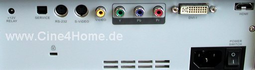 Bei den Anschlüssen haben viele Projektorenhersteller dazu gelernt. War früher meist nur ein hochwertiger Eingang vorhanden, stehen mittlerweile für jede Signalart eigene Anschlüsse zur Verfügung. Seit einiger Zeit wünschen wir uns allerdings mehr digitale Eingänge (DVI / HDMI), da die digitale Übertragungsart nicht nur die qualitativ beste ist, sondern bei neuen Standards wie HDTV nahezu obligatorisch wird. DVD-Player, Satelliten-Receiver, HD-DVD, BlueRay und sogar die Playstation3 sind alles potenzielle Digitalquellen, mit denen ein aktueller Projektor konfrontiert werden wird.