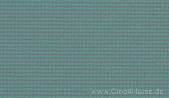 In der Pixelstruktur profitiert der Projektor allerdings nicht von der erhöhten Auflösung, denn hier verwendet man in der Regel nur 720 vertikale Pixel. HD-DLP Projektoren haben aber von Haus aus einen guten Füllfaktor, so dass die Pixelstruktur (Bild oben) aus angemessenen Betrachtungsabständen für das Auge unsichtbar bleibt. Die leichten Konvergenzverschiebungen, bedingt durch die Optik des HD72, vermindern den Effekt zudem durch Rotsäume zwischen den Pixeln.