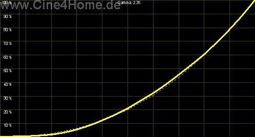 Anders sieht es in normalen Wohnzimmern mit hellen Wänden aus, hier besteht das Risiko, dass dunkle Details von reflektiertem Licht "verschluckt" werden. Unter solchen Bedingungen sind flachere Gammakurven empfehlenswerter. Direkt ab Werk sind sie aber mit dem Optoma nicht so leicht zu erreichen. Mit ein wenig Geduld und genauer Abstimmung der Brightness- und Kontrastlevel ist es uns gelungen, einen gleichmäßigen 2,3 Anstieg zu realisieren, der durch eine gute Durchzeichnung für nahezu alle Räume geeignet ist.