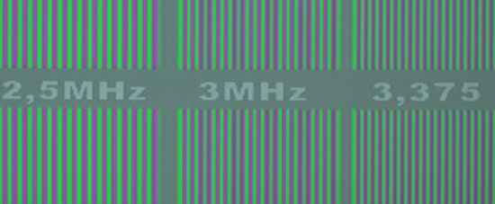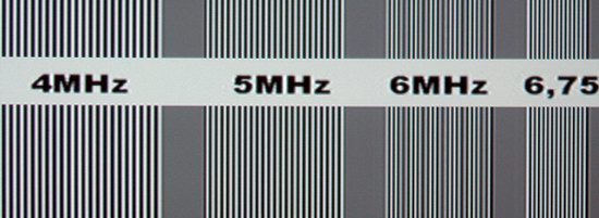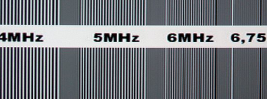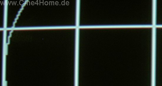 Positiv ist die scharfe Darstellung des höchsten Auflösungsbereichs von 6,75MHz, frei von jeglichem Pegelabfall. Dadurch wird das laufende Filmbild scharf, ohne dabei künstlich überschärft zu wirken. Wieder anders sieht es bei der analogen Zuspielung aus. Hier wurden wir durch einen totalen Pegelabfall ab 6MHz geschockt, kleine Details werden fast komplett von dem Projektor verschluckt.