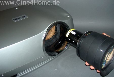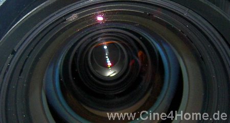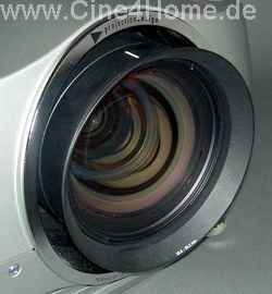 Die Wechselobjektive sind ebenfalls von einer Güte, die man im Heimkinobereich so nicht findet. Die Profioptiken sollen optimale Projektionseigenschaften ohne Kompromisse bieten. Gute Optiken haben traditionell ihren Preis: Obige Optik entspricht in ihrem Wert bereits einem Einstiegsprojektor :-) Im Inneren der Optik befindet sich zudem eine variable Irisblende, die vom Anwender in unzähligen Stufen geöffnet bzw. geschlossen werden kann.