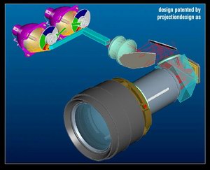 Optische Schärfe muss bei jedem Projektor teuer erkauft werden, sie hängt ab von den Glaskomponenten des Lichtweges, vor allem von der eigentlichen Projektionsoptik. Letztere haben seit Jahrzehnten ihren stolzen Preis, der eine konstante Stabilität aufweist (vgl. Kameraobjektive). Und hier unterscheiden sich herkömmliche "Consumer"-Produkte von professionellen High-End Varianten. Der Projection Design Action3 gehört klar zu letzteren Kategorie, was besonders an der Projektionsoptik zu erkennen ist. Die verschiedenen Wechselobjektive des Action3 sind per Bajonettverschluss einsetzbar und sprechen in ihrem Erscheinungsbild für sich.