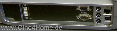 Wirft man einen Blick auf die Rückseite des Projektors, so wird man zunächst schockiert sein: Nur ein DVI-Bildeingang sowie diverse Steueranschlüsse sind hier zu finden.