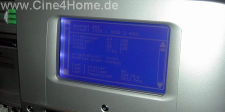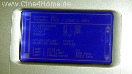 Wie bereits erläutert arbeiten der Projektor und der dazu gehörige Videoprozessor im Tandem. Dementsprechend "dual" fällt auch die Steuerung aus: Auffällig ist zunächst, dass der Projektor über keine eigenen On-Screen-Menüs verfügt. Stattdessen befindet sich auf seiner Rückseite ein kleiner Kontrollbildschirm für die wichtigsten Informationsangaben.