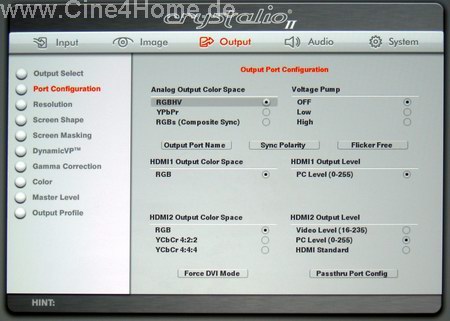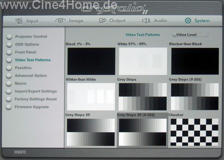 Und wieder "Gamma" (Bild oben), diesmal aber nicht zur Eingangsanpassung, sondern zur Beeinflussung des Ausgangs. Drei Gammakorrekturen (Projektor / Eingang / Ausgang) sind nahezu schon ein "Overkill", der für Verwirrung sorgen könnte. Doch für Profi-Anwendungen machen sie durchaus Sinn.