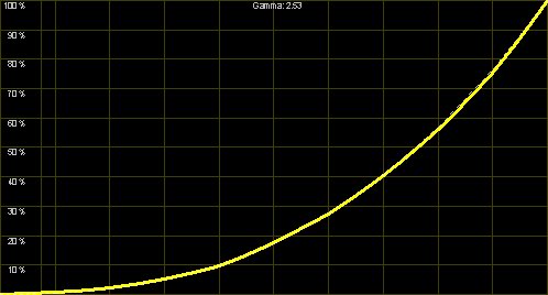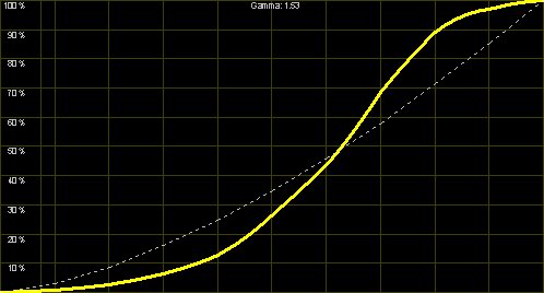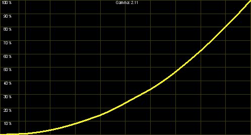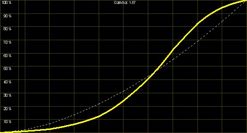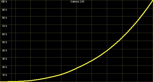 Die "Video2"-Einstellung verlässt den Bereich der Videonormen stärker, dieses Preset ist offensichtlich für Projektionen in nicht abgedunkelten Räumen gedacht. Der schnelle Anstieg mit obigem Abflachen (nahe am "Clipping") erhöht die Helligkeit des Bildes, so dass auch bei Restlicht alles erkennbar bleibt. Für normale Heimkinoanwendungen ist dieser Modus aber nicht zu empfehlen.