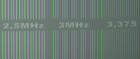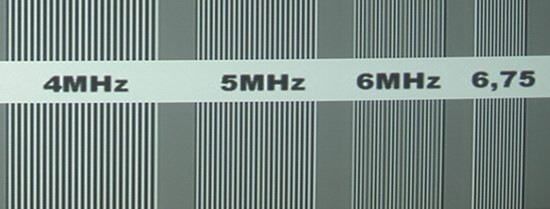 Ebenfalls sehr lobenswert ist der geringe Pegelabfall zu hohen Auflösungen hin. Damit behalten auch kleine Details ihre volle Leuchtkraft, wovon die Bildschärfe deutlich profitiert. Auch die sehr gute Farbtrennung kommt einer überdurchschnittlichen Schärfedarstellung zu Gute.