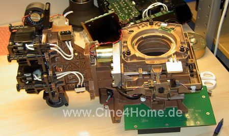 Besonders auffällig ist die Verkapselung des Lichtweges: Zentimeter dickes Metall sorgt dafür, dass alle optische Elemente auch bei extremer Beanspruchung und bei Transport an ihrer Stelle bleiben und sich kein störendes Staubkorn in das Innere des Projektors verirrt. So eine Qualität ist in herkömmlichen Heimkinobeamern sonst nicht zu finden, Punkt.