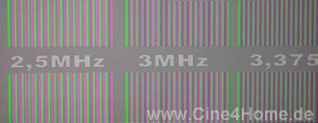 3.6 Schärfe, Ausleuchtung, Konvergenz (Know How Link hier) Wie bereits unter Technik beschrieben, verfügt der Sanyo PLV-Z4 über eine vergrößerte Optik mit ebenfalls vergrößertem Zoombereich. Die Bildqualität leidet under der gewachsenen Flexibilität zum Glück nicht: Die Schärfe ist auch bei verwendetem Lens-Shift gleichmäßig bis in die Randbereiche und auch ein Helligkeitsabfall ist nicht mit bloßem Auge auszumachen. Lediglich die Panelkonvergenz wies bei dem Vorseriengerät eine Verschiebung von 1,5 Pixeln auf, was bei kleinen Schriften zu leichten Fabsäumen führt, hier bleiben die finalen Ergebnisse der Seriengeräte abzuwarten.