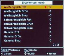 Die Bildeigenschaften der einzelnen Presets werden wir im Bildtest weiter erläutern. Das Bildanpassungs-Menü beinhaltet alle Funktionen, die „Bildkalibrierer“ lieben: Von Helligkeit, über Farbe bis hin zu RGB-Gamma kann hier alles im Bild auf mehreren Seiten beeinflusst werden.