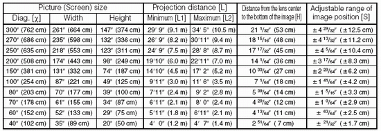 - DMD™ chip: 0.65” (1,280 x 768 dots) Digital Micromirror Device™ (DMD™) x 1 by Texas Instruments - Number of pixels: 983,040 pixels (1,280 x 768) - Resolution: 720 TV lines (DTV 720P input), 520 TV lines (video input) - HDTV compatibility: 1080i (in intelligent compression), 720P, 576P, 576i, 480P, 480i - Computer RGB input signals: XGA, SVGA, VGA, Mac 19”/16”/13” - Video colour systems: NTSC/NTSC4.43/PAL/PAL(60Hz)/PAL-M/PAL-N/SECAM - Lens: 1:1.15 manual zoom and focus - Projection size: 40” – 300” - Projection distance: 3.0 – 3.45 m for 16:9 wide 100” screen - Luminance: 1,200 ANSI Lumen (in High-Brightness Mode) - Contrast ratio: 6,500:1 (in High Contrast Mode) - Input terminals: 3RCA (component) x 2, RCA video x 1, S-video x 1, HD-15 (RGB/component) x 1 - RGB terminal: HDMI (digital video component & RGB) x 1 - Power source: AC 100-240 V, 50/60 Hz (multi-voltage) - Power consumption: 355 W (standby 6.6 W) with AC 100 V - Fan noise: 33 dB (Standard Mode), 30 dB (Low Power Mode) - Projection lamp: 275 W (SHP) - Lamp life: 3,000 hours (Low Power Mode) - Dimensions (W x H x D) : 315 x 120 x 294 mm (including adjuster legs and lens), 315 x 109 x 280 mm (main body only) - Weight: 4.0 kg (including adjuster legs and lens) - Supplied accessories: Lens cap, power cord, phosphorescent remote control