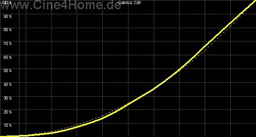 Mit einem gleichmäßigen Anstieg von 2,26 erfüllt dieses Preset fast perfekt auf den Punkt die Anforderungen der Videonorm. Dabei werden dunkle Details sichtbar und plastisch heraus gearbeitet. Gerade in Verbindung mit dem High-Contrast Modus und seinem hervorragendem Schwarzwert gewinnen so dunkle Szenen deutlich an Glaubwürdigkeit und Plastizität. Auch in hellen Bereichen sind keine Defizite wie Überstrahlen oder Clipping auszumachen, ebensowenig Farbreduktionen, die Weißanhebungen oft gerne nachgesagt werden. Die DDP 3020 Signalverarbeitung leistet hier ganze Arbeit.